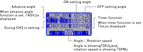 Available to see ON/OFF for each CH of setting angle, advance angle function and timer function in the primary screen of PS-711