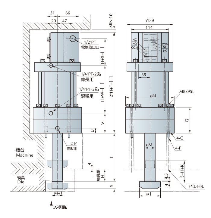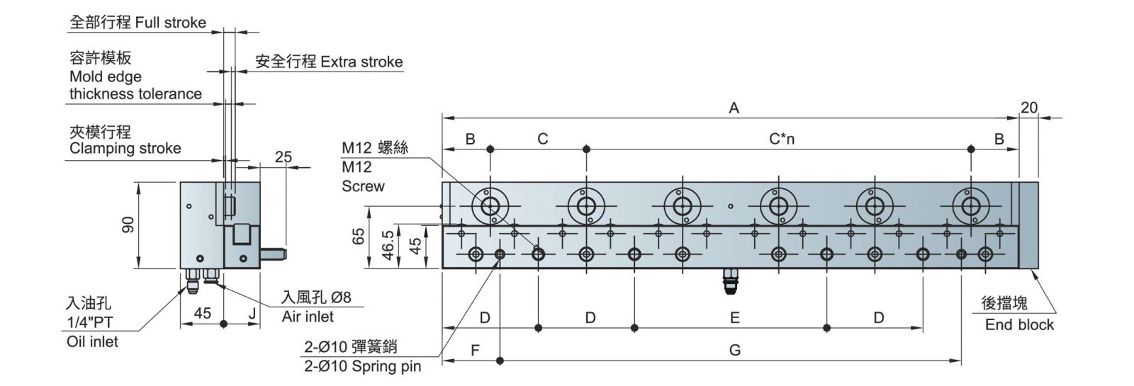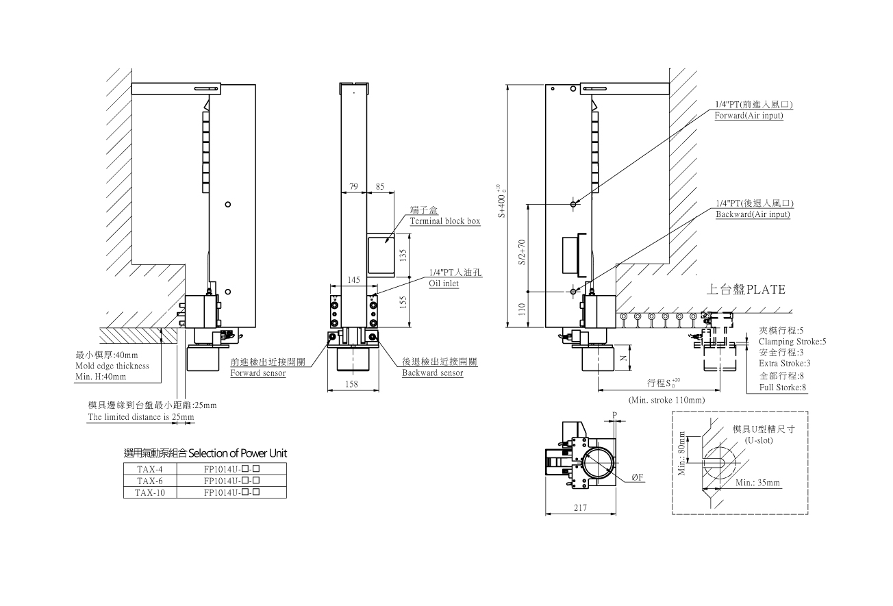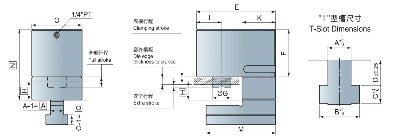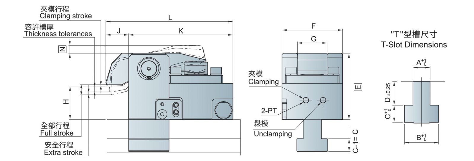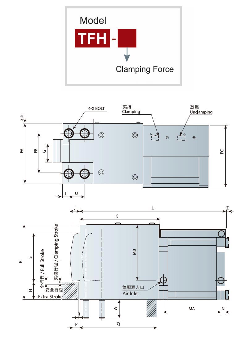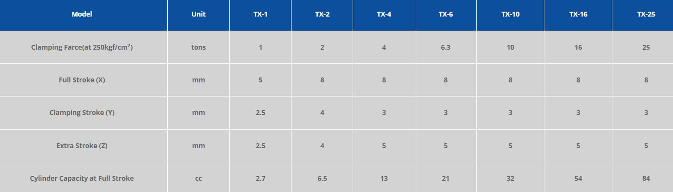 * Extra stroke is the difference between full stroke and clamping stroke with extra space allowed for safe operation.