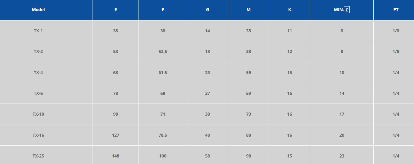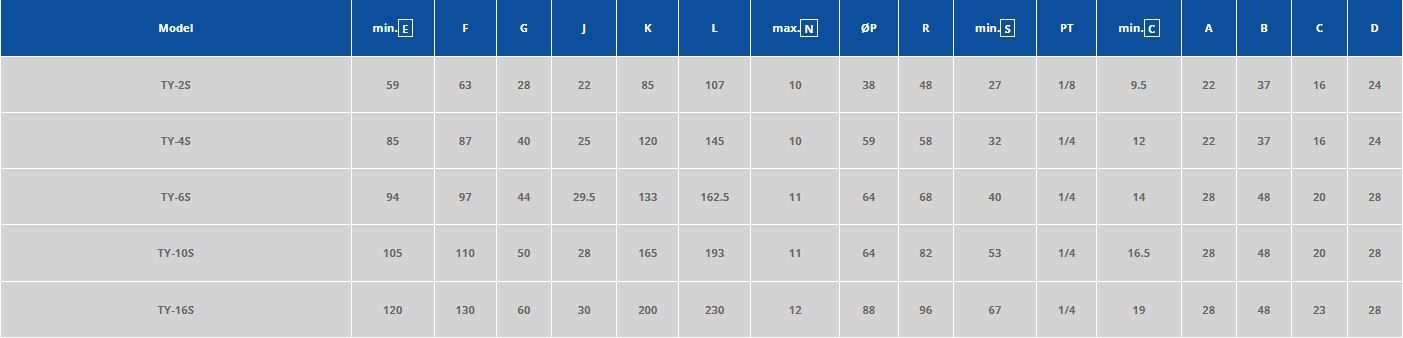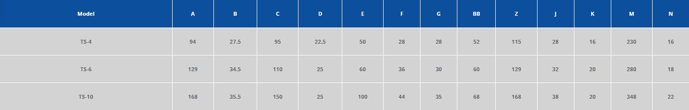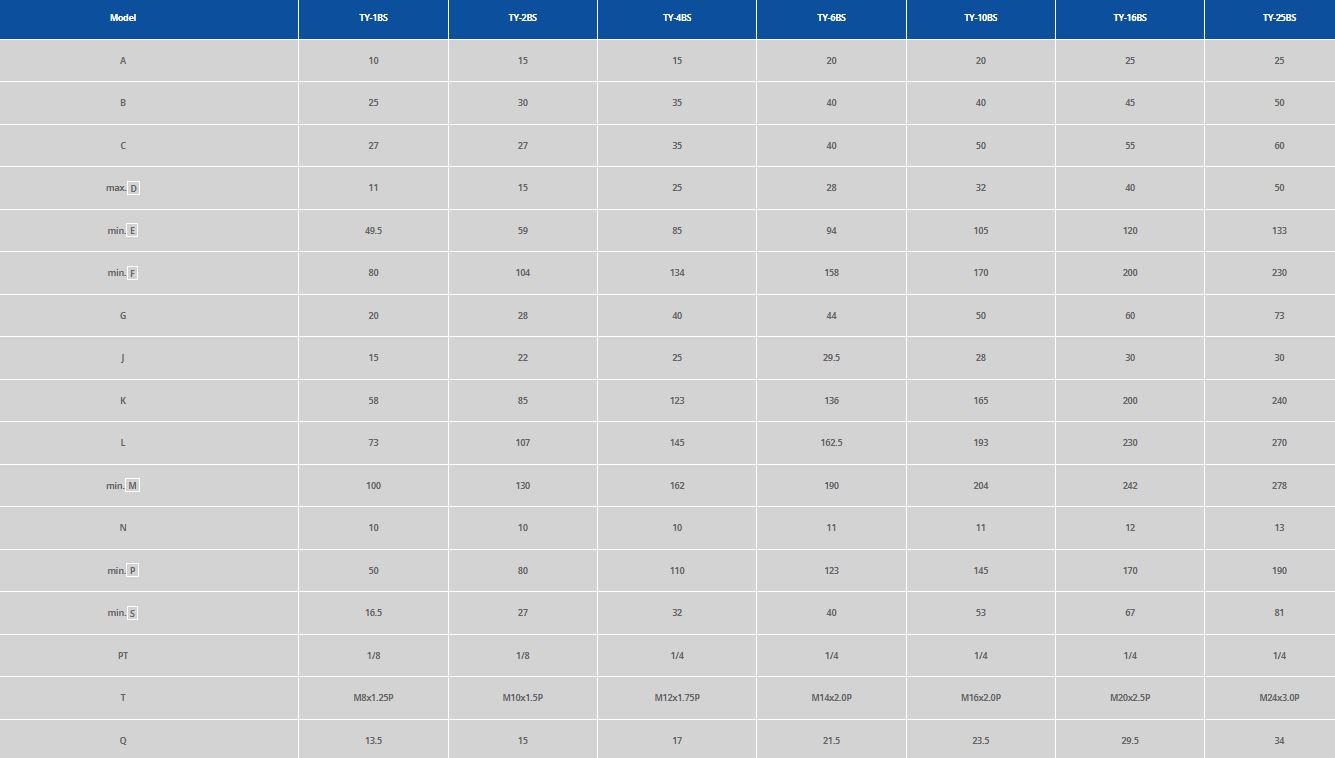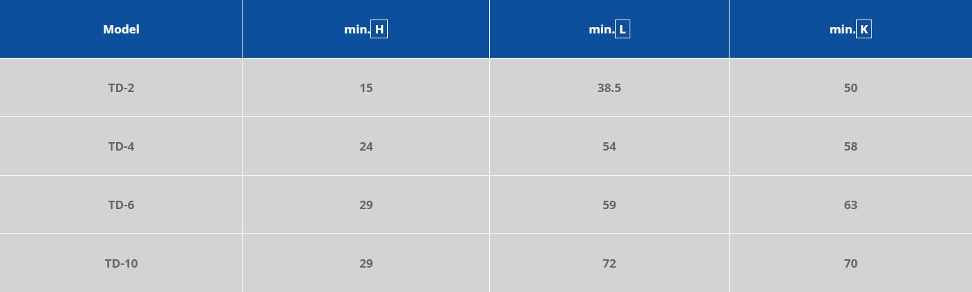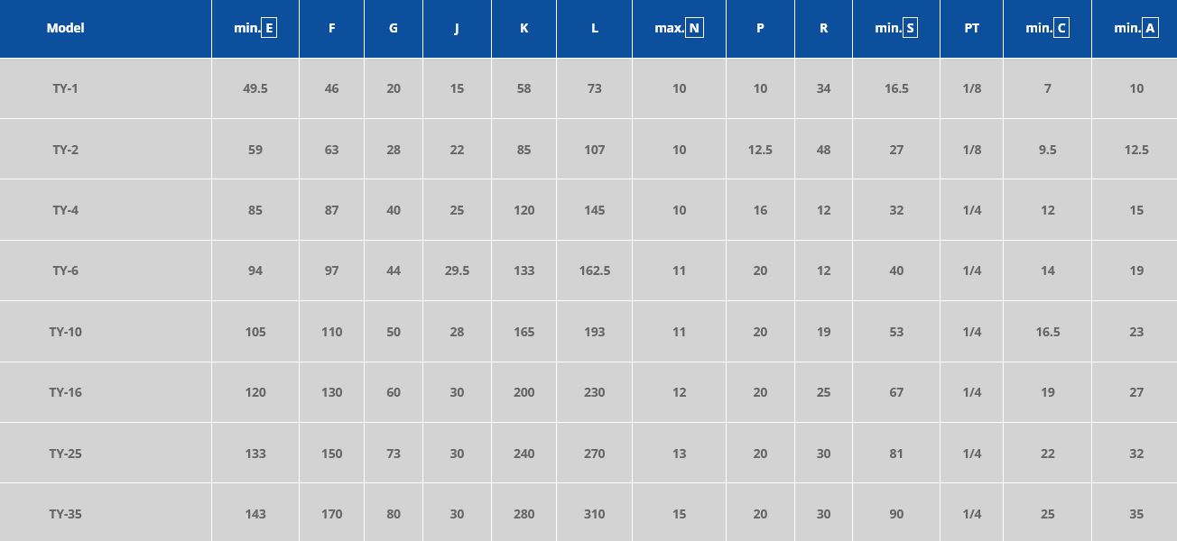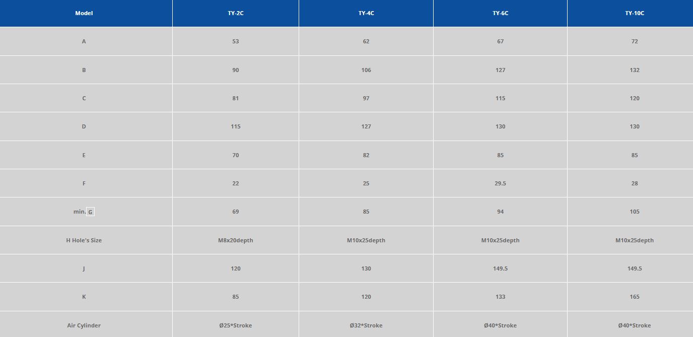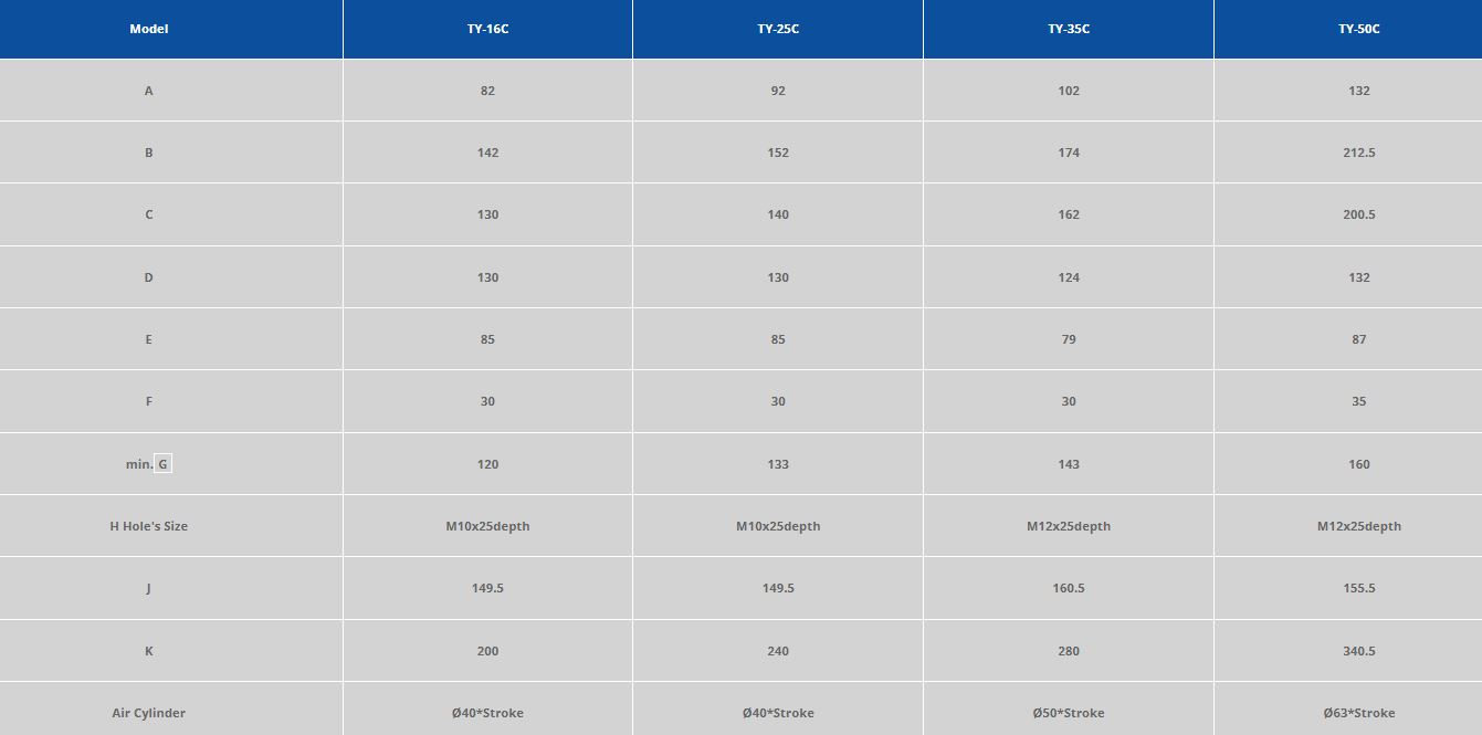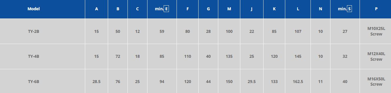 For a closer look at the exact dimensions of the TY series die clamps please see the following diagram and table.