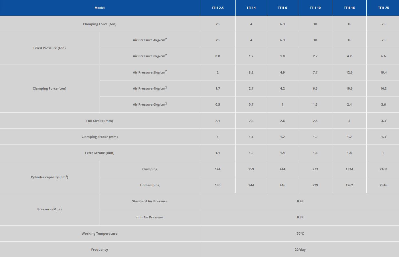 * Clamping strokes and ectra strokes are for standard models;custom strokes avaible on request.