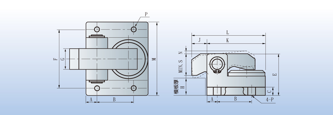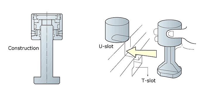 This vertical type clamp does not required a U-slot on the die shoe.The clamping stroke will be longer.