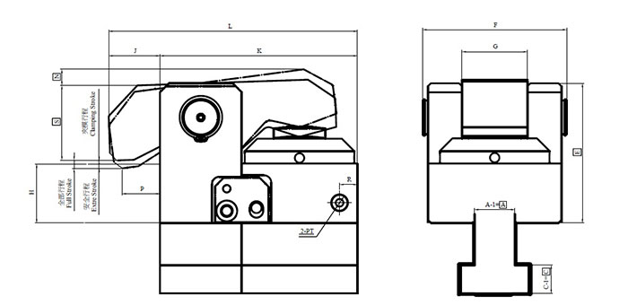 The characteristics of this double-action clamp are hydraulic pressure keeping,longer stroke,water proof and dirt proof cylinder design. It requires two hydraulic circuits to control clamping and unclamping.The lifetime is much longer.