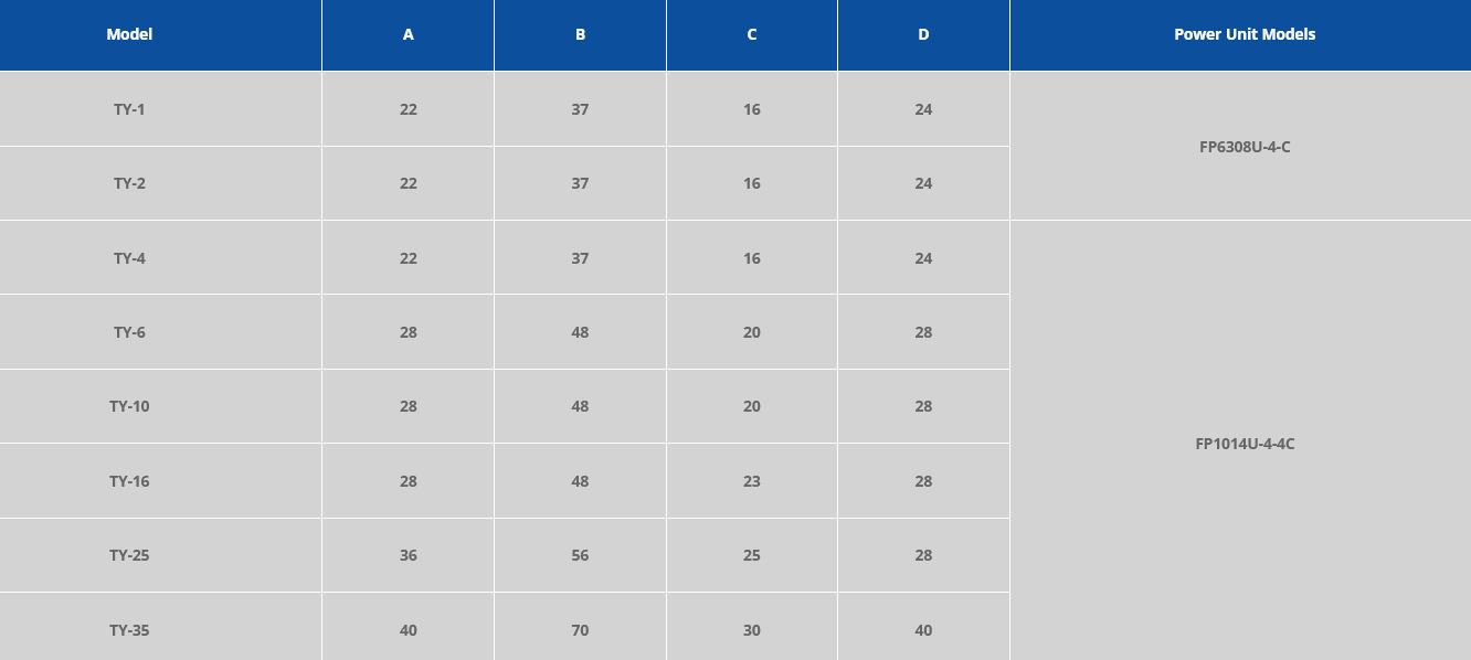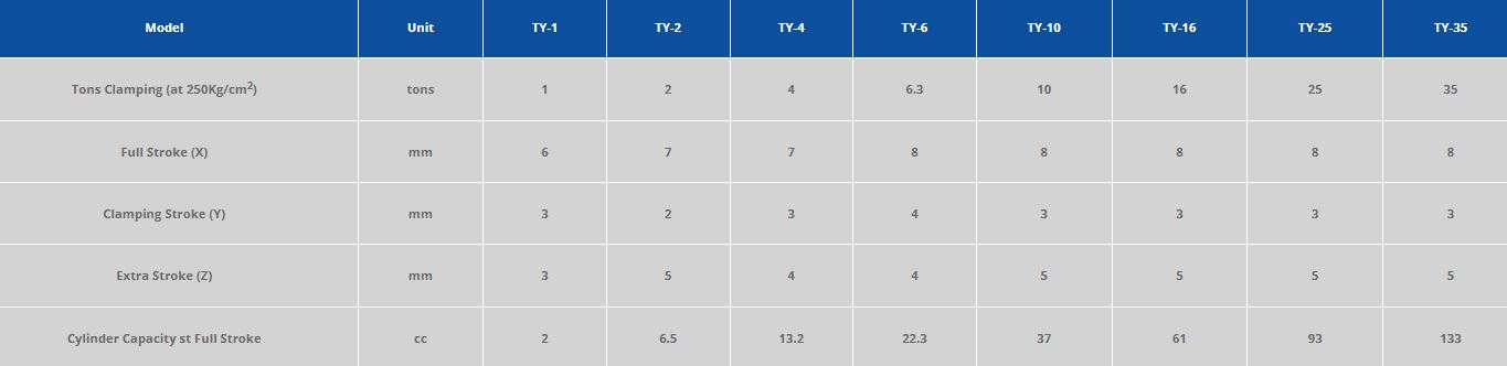 TY Clamp Model Specifications