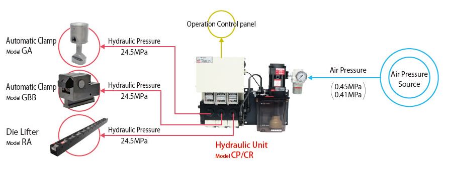 Most suitable hydraulic source of automatic clamp /RA die lifter.